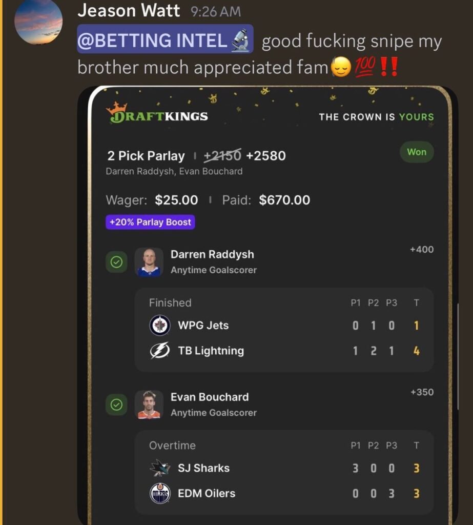 A quick note to thank you for yesterday's 3.54 odds; this is my fourth win. You guys are fantastic. I'm with you for the long haul....